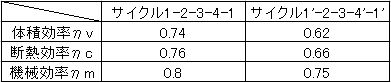 ただし、圧縮機の効率は下表の値とし、冷媒の各状態点での比エンタルピーは次のとおりとする。