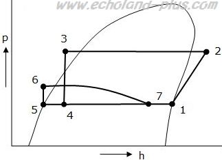 (1)この冷凍装置の理論冷凍サイクルを解答用紙のp-h線上に描き、点1~点7の各状態点を図中に記入せよ。