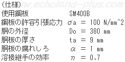 最高使用圧力Paとすると、 (テキスト<9次:P179左 (12.8)式><8次:P172左 (12.8)式>)