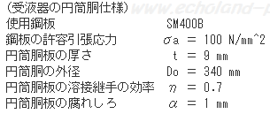 この容器の必要厚さtaを与えられた条件で求め。この容器の厚さtが、必要厚さta以上であれば使用可能である。