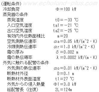ただし、冷媒と空気との間の温度差は算術平均温度差を用い、蒸発器、配管における圧力損失による冷媒の温度変化はなく、蒸発器の伝熱管の熱抵抗は無視できるものとする。