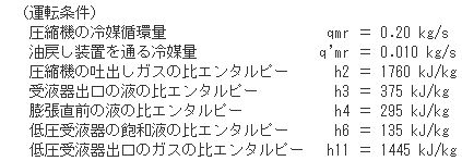 (『試験問題と解答例:日本空調冷凍学会』の模範解答では、この点はh6として計算しているようだが…。)『冷凍受験テキスト:日本冷凍空調学会』には、アンモニア仕様の詳細は記されていないし、過去問は見当たらないし…。