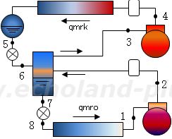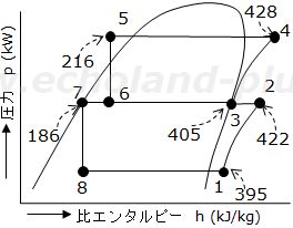 珍しい二段圧縮二段膨張です。(二圧一膨帳と考え方は同じです。)熱収支必須です。 機械的摩擦損失仕事の熱は冷媒に加わらない