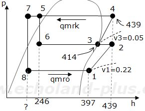 (2) 蒸発器入口の冷媒の比エンタルピーh8(kJ/kg)を求めよ。