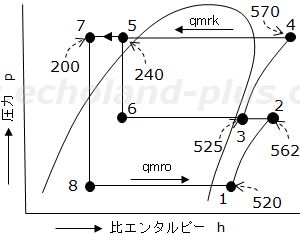 (2) 低段圧縮機吐出しガスの実際の比エンタルピーh2´(kJ/kg)を求めよ。
