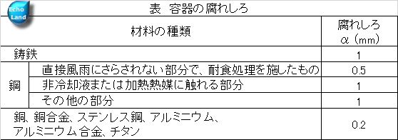 表 容器の腐れしろ内の「スレンレス鋼」→「ステンレス鋼」に訂正。(2022(R04)/02/23)