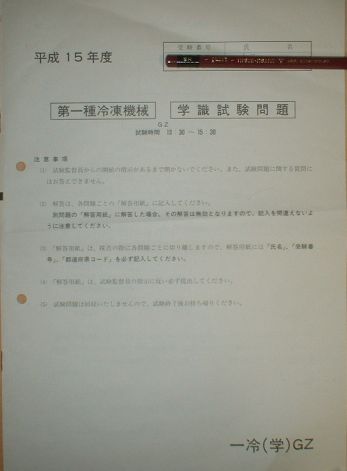 1問ずつ別々に用紙があります。ですから、5枚あるんです。まず最初に、すべての解答用紙に 受験番号と氏名を書くんです。(保安管理技術が記述式問題だった頃(平成15年まで)は、保安も5問でしたからやはり5枚解答用紙があったんです)