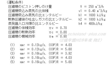 正解は、(1) qmr = 0.12kg/s (COP)R = 4.03