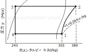 ただし、圧縮機の機械的摩擦損失仕事は吐出しガスに熱として加わるものとする。また、配管の熱の出入りおよび圧力損失はないものとする。
