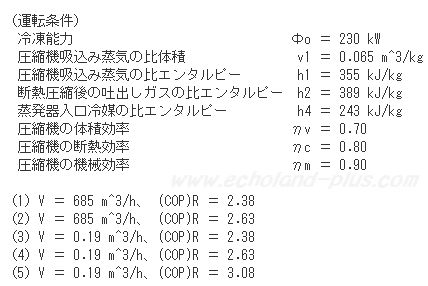 (5)V = 0.19 m^3/h、(COP)R = 3.08