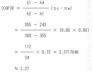 つらつらと式を眺めると、h1、h2、h4、ηc、ηmは、分かっていますので、COPは楽勝のようです。(この4つの数値が与えられていれば、ここではqmrは必要ありません。)