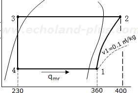 断熱圧縮後の吐出しガスの比エンタルピー h2 = 400 kJ/kg