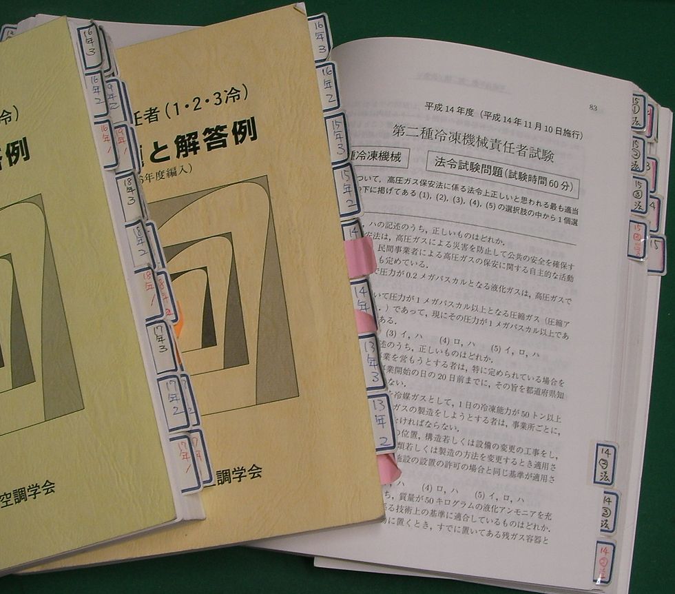 日本冷凍空調学会発行の過去問題集「冷凍機械責任者(1・2・3冷)試験問題と解答集」は、 問題ページと解答ページが別れているので、使いづらいです。