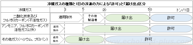▽法第5条第1項第2号 ← 1日冷凍能力20トン以上は許可が必要(20トンを超えるものでガスの種類は政令(第4条)で定めてあります)